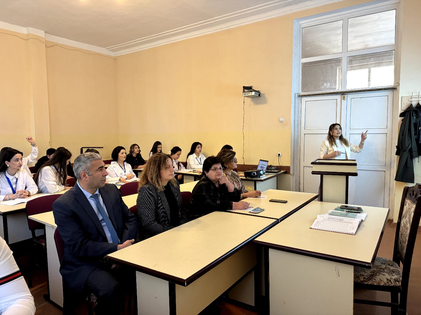 Açıq dərsdə Tarix-Coğrafiya fakültəsinin dekan müavini b/m. Şəhriyar Quliyev, Ümumi tarix kafedrasının müdiri dos. Etibar Musayev, dos. Xatirə İlyasova, dos. Nərgiz Rəsulova, t.ü.f.d. Gültəkin Allahverdiyeva, baş müəllim Bəhman Kazımov və müəllim Aynurə Ələsova iştirak etmişlər. Açıq dərs sonda müzakirə edildi.