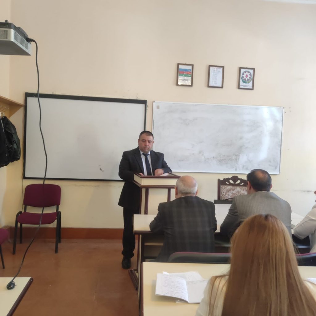 07 aprel 2025-ci il tarixdə Tarix-coğrafiya fakültəsinin Tarix müəllimliyi ixtisasının I kursunda Azərbaycan tarixi kafedrasının baş müəllimi Mehdiyev Eldar Musa oğlunun “Azərbaycan tarixi” fənnindən “XIII-XIV yüzilliklərdə Azərbaycanda ictimai-iqtisadi quruluş, dövlət quruluşu və idarə sistem” mövzusunda açıq dərsi olmuşdur.