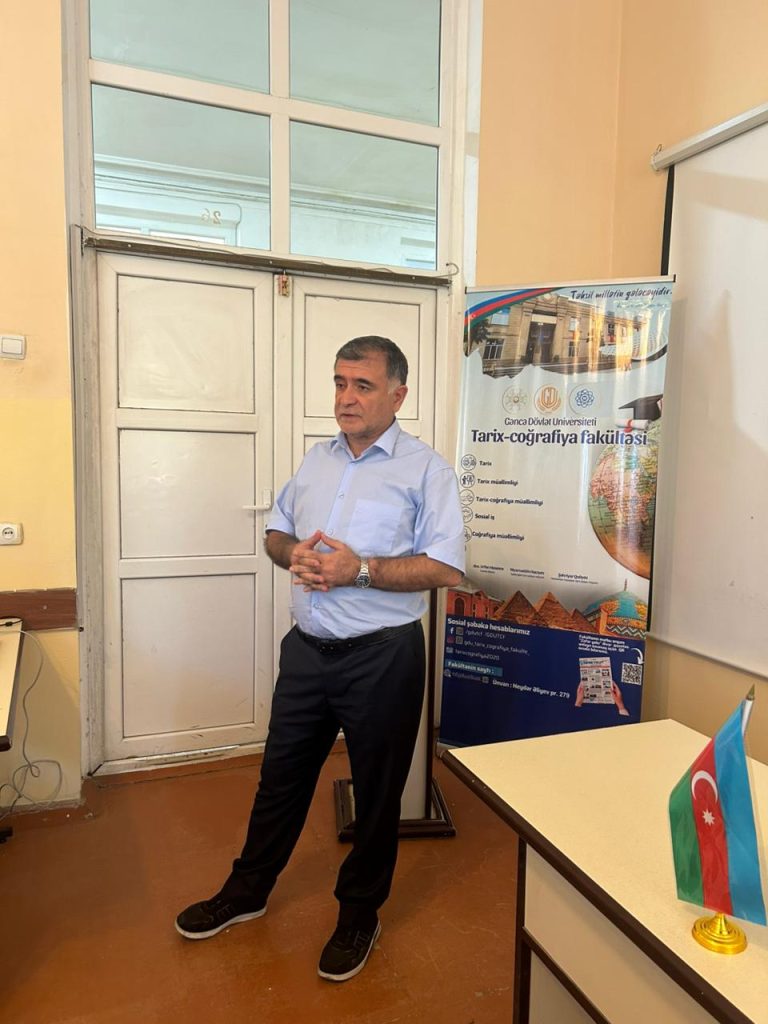 Tarix və coğrafiya fakültəsində “Qərbi Azərbaycan-tarixi irs və mədəni kimlik” adlı seminar keçirilmişdir. Seminarda Ümumi tarix kafedrasının dosenti Hüseyn Bəxtiyarlı, baş müəllim Bəxtiyar Məhərrəmov, Coğrafiya kafedrasının fəxri professoru Rəşad Nuriyev və fakültənin tələbələri iştirak etmişdir.