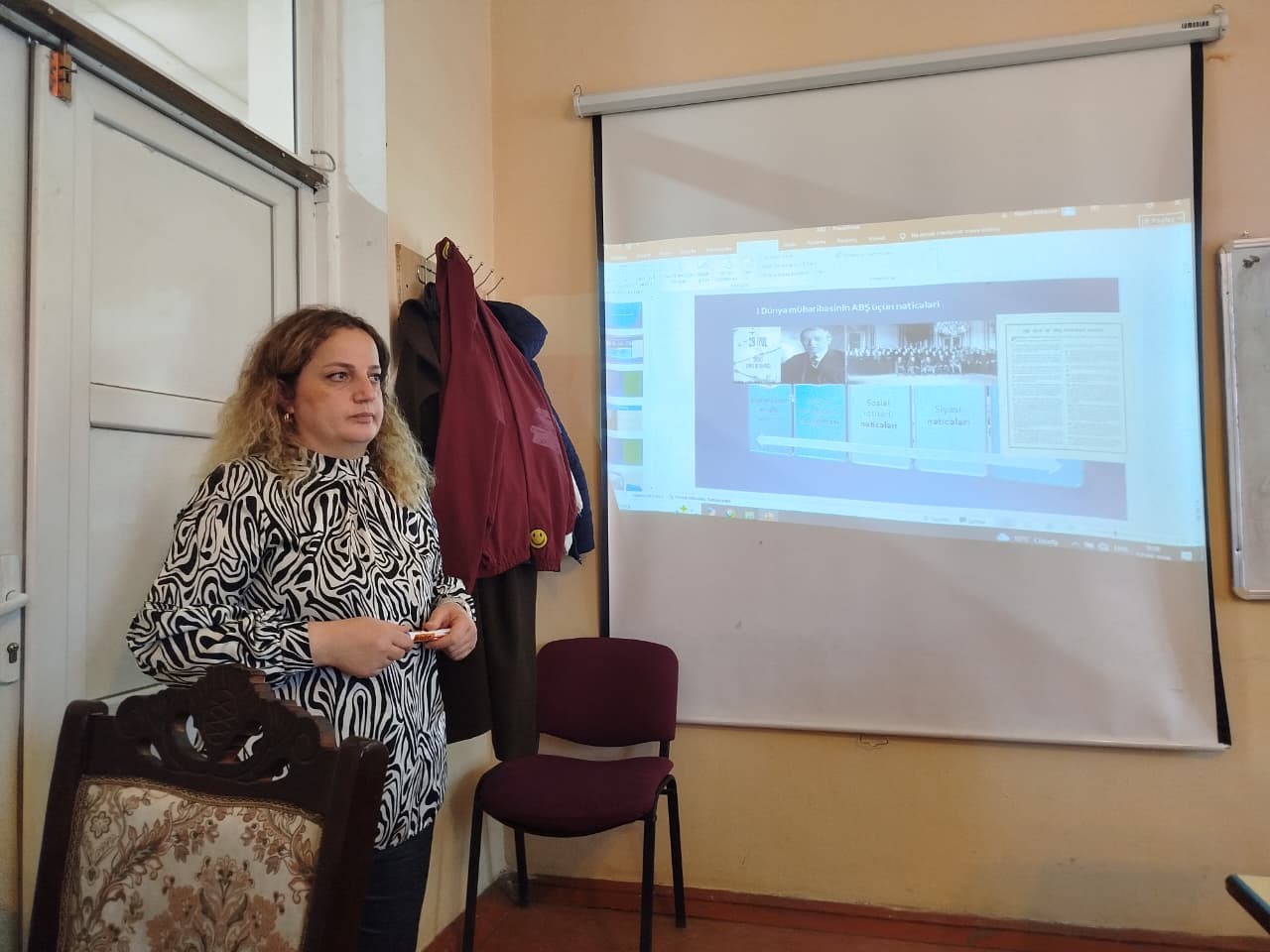 17 mart 2026-cı il tarixində Tarix və coğrafiya fakültəsinin Tarix və coğrafiya müəllimliyi ixtisasının III kursunda Ümumi tarix kafedrasının müəllimi Ələsova Aynurənin Müasir dünya tarixi fənnindən “ABŞ və İtaliya 1918-1939-cu illərdə” mövzusunda açıq seminar dərsi keçirilmişdir. Dərsin əsas məqsədi tələbələrin mövzu üzrə nəzəri biliklərini möhkəmləndirmək, onların müstəqil düşünmə və elmi müzakirə bacarıqlarını inkişaf etdirmək olmuşdur. Seminar zamanı müəllim mövzu ilə bağlı əsas məsələləri qısa şəkildə izah etmiş, daha sonra tələbələr mövzu üzrə hazırladıqları çıxış və təqdimatlarla iştirak etmişlər. Dərs müzakirə və sual-cavab formasında təşkil olunmuş, tələbələrin fəallığı təmin edilmişdir. Müəllim seminar prosesində interaktiv metodlardan istifadə edərək tələbələri mövzu ətrafında fikir mübadiləsinə cəlb etmişdir. Tələbələr verilmiş tapşırıqlar üzrə çıxış etmiş, mövzu ilə bağlı müxtəlif elmi mənbələrə əsaslanaraq öz fikirlərinin bildirmişlər. Seminar dərsində tələbələrin mövzuya marağı və fəallığı müşahidə olunmuşdur.