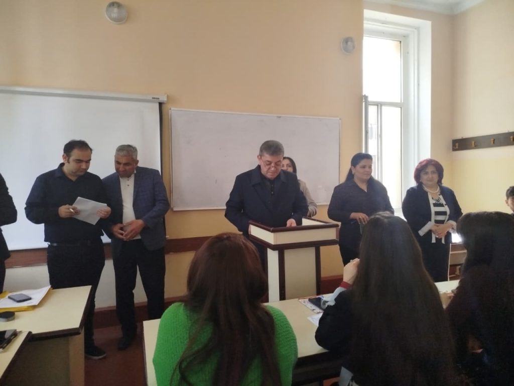 08 aprel 2026-cı il tarixində Tarix və Cografiya fakültəsində 2026-2027 -ci tədris ilində Tarix, Tarix müəllimliyi, Tarix və coğrafiya müəllimliyi ixtisaslarından tədris olunan seçmə fənn blokuna daxil fənnlər ilə əlaqədar olaraq ə Ümumi kafedrasının müəllimləri və akademik məsləhətçiləri tələbələrlə görüş keçirmişlər. Onlar seçmə fənn bloklarına daxil olan fənlərin təsviri, məqsəd və hədəfləri haqqında tələbələrə məlumatlar vermişdilər.