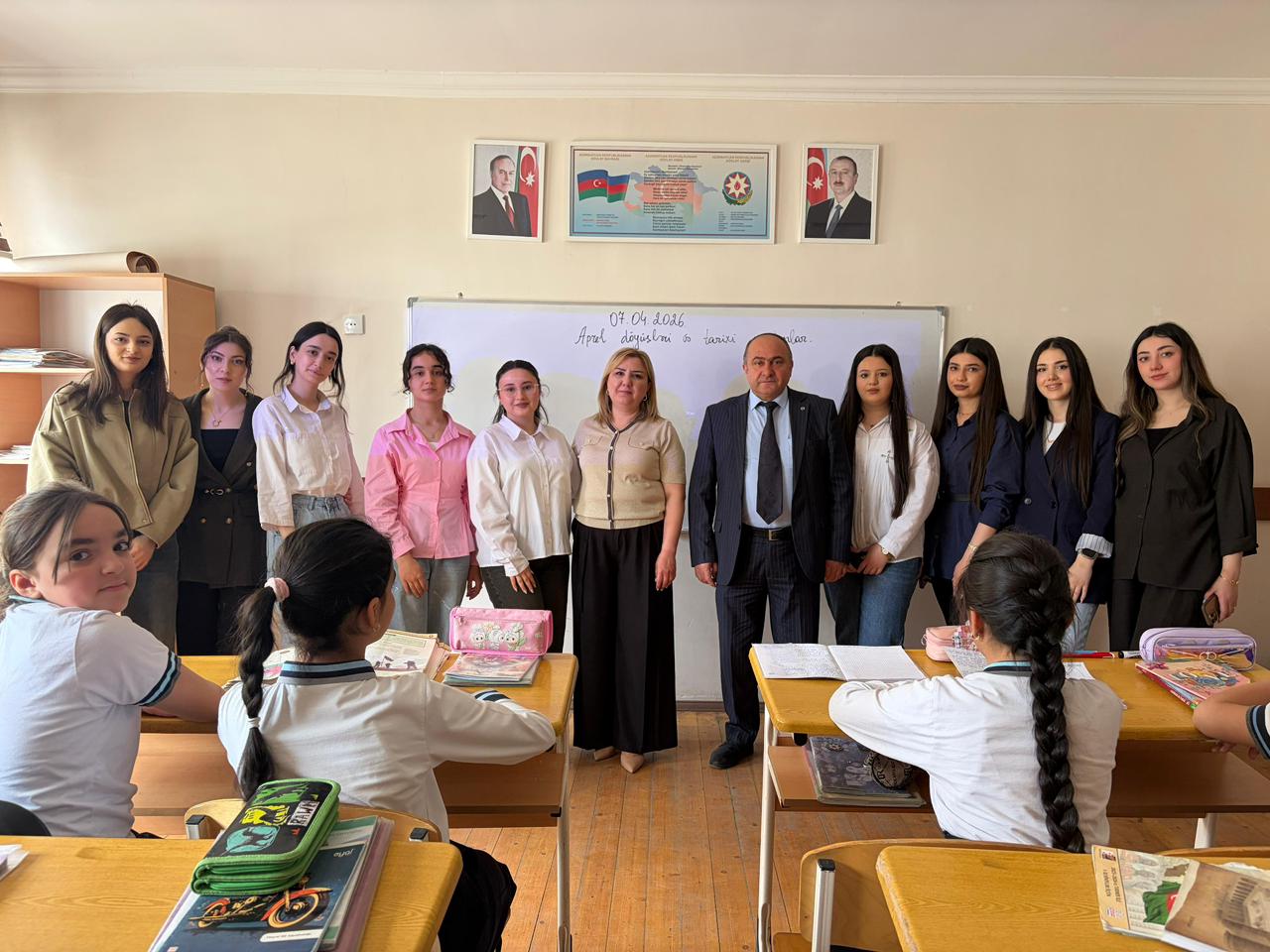 07.04.2026-cı il tarixində Gəncə şəhər S.Vəliyev adına 34 nömrəli tam orta məktəbdə Tarix və Coğrafiya fakültəsinin Tarix müəllimliyi ixtisasının IV kurs tələbəsi Tanırverdiyeva Aysel Hamlet qızının sınaq dərsi keçirilmişdir.