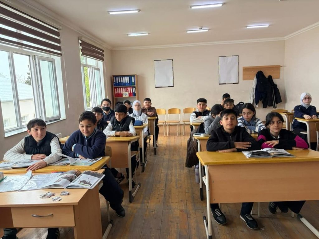 Dərsin təşkilində həmin məktəbdə təcrübədə olan tələbələrimiz, Tarix müəllimliyi ixtisasının IV kurs tələbələri Vəfa Vəliyeva və Cəfər Vəliyev yaxından iştirak etmişdir.