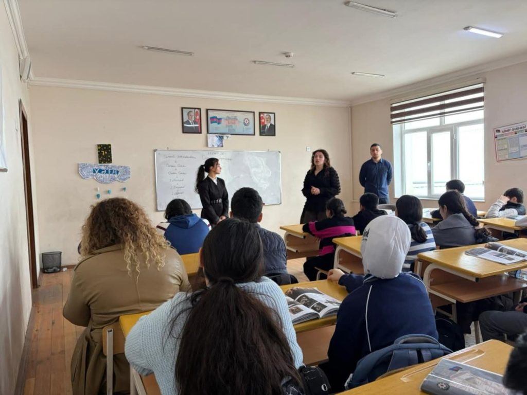 Dərsdə Təcrübə və karyera şöbəsinin müdiri fizika-riyaziyyat üzrə fəlsəfə doktoru, dosent Cabbar Qarayev, Ümumi tarix kafedrasının müdiri dosent Etibar Musayev və Ümumi tarix kafedrasının müəllimi Ələsova Aynurə iştirak etmişdir.