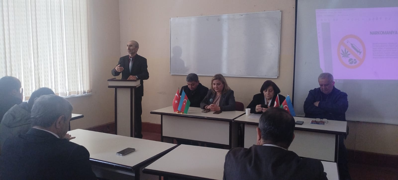Tədbirdə Tarix və coğrafiya fakültəsinin dekanı Urfan Həsənov, Ümumi tarix kafedrasının müdiri Etibar Musayev, Azərbaycan tarixi kafedrasının müdiri Gülarə Əliyeva, Sosial fənlər kafedrasının baş müəllimi Üzeyir Balakişiyev, Ümumi tarix kafedrasının dosenti Hüseyn Bəxtiyarlı, Sosial fənlər kafedrasının müəllimi Ramin Əliyev, eləcə də I kurs tələbələri Fatimə Seyidova və Mövlam Quliyev mövzu ətrafında çıxış ediblər. Məruzələrdə narkotik asılılığının həm hüquqi, həm də tibbi aspektləri izah olunub.